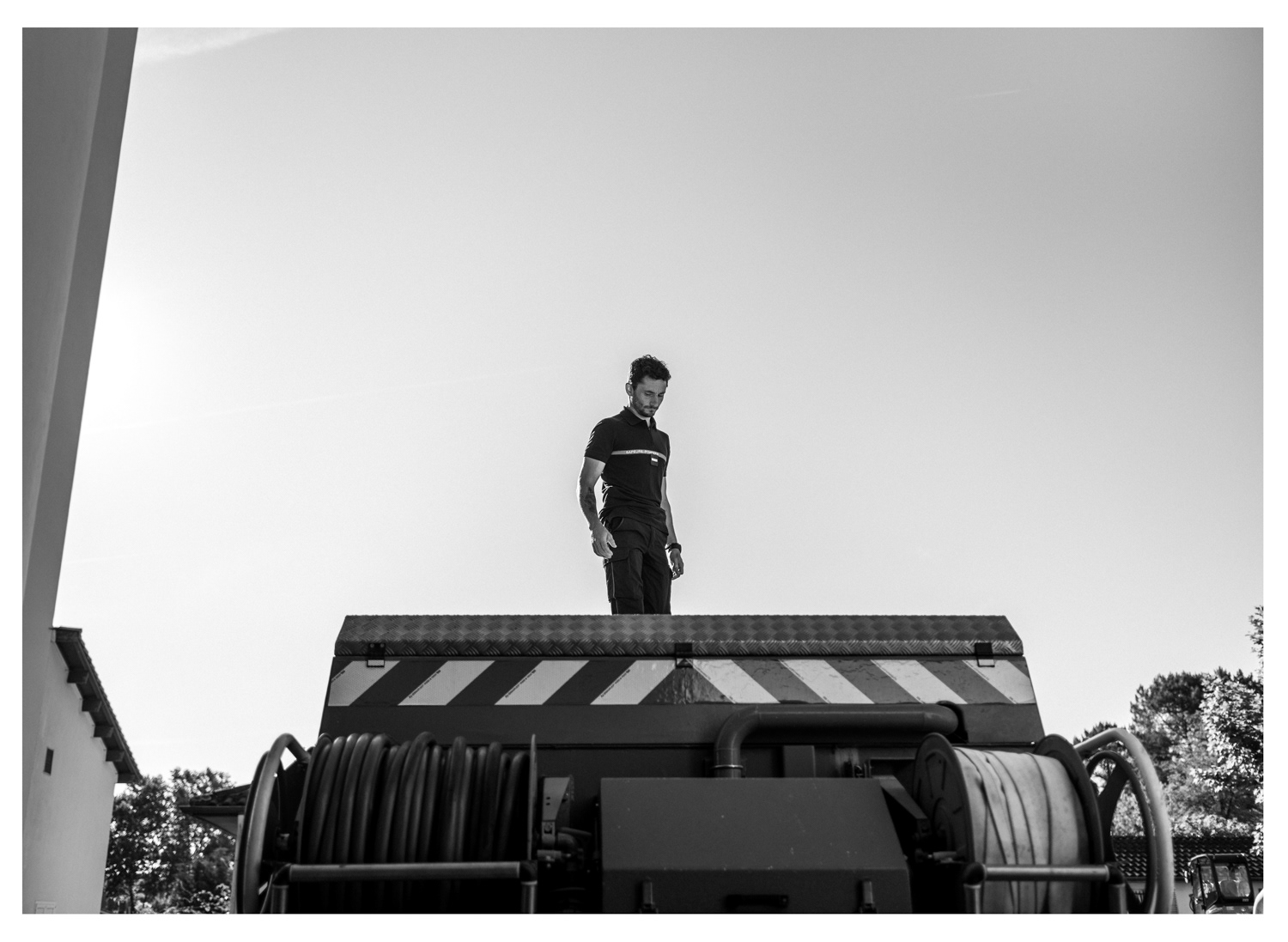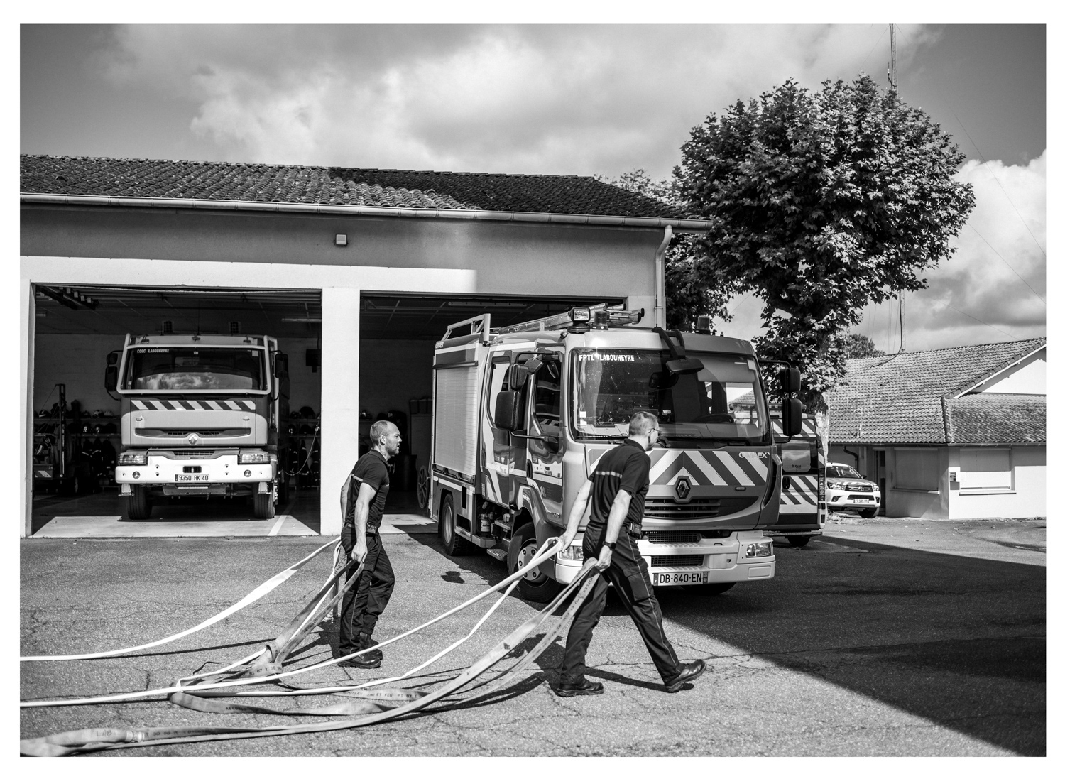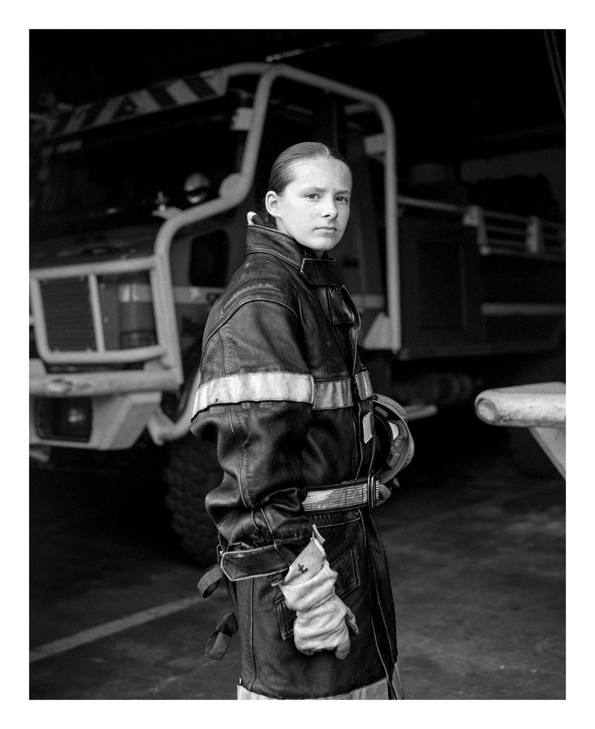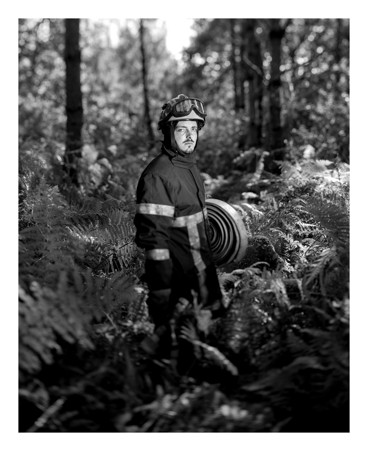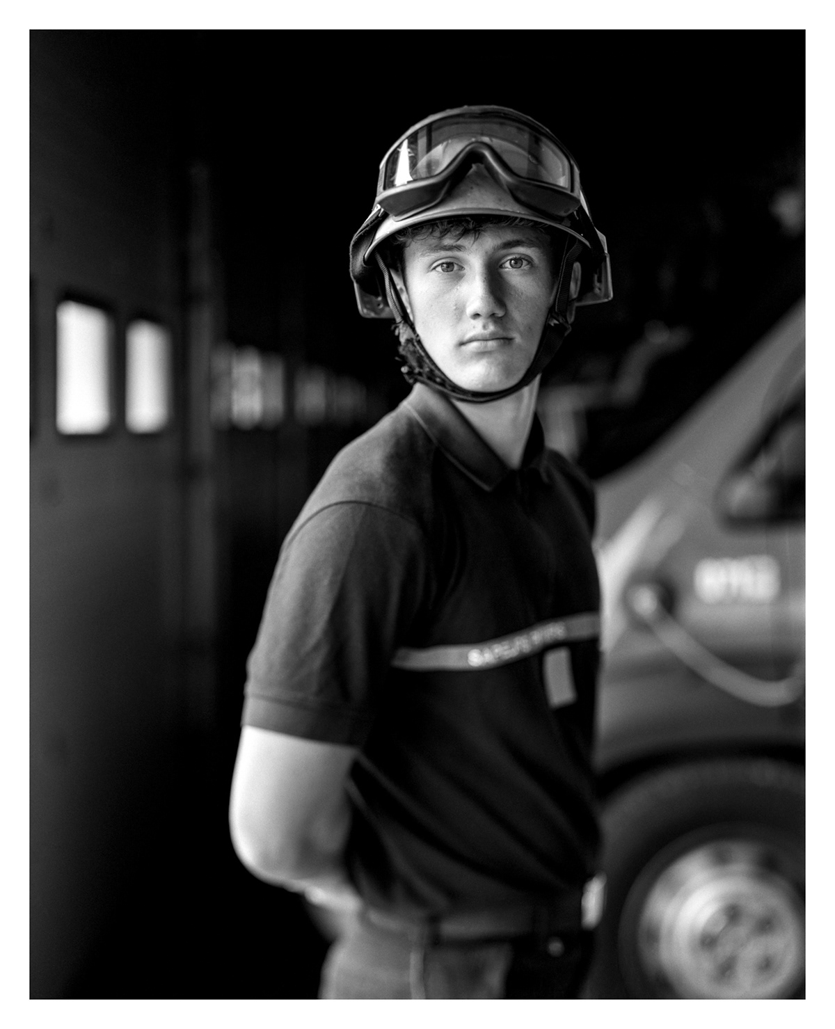 Leurs mains sont animées par ces gestes empruntés à l’expérience de leurs aînés, destinés à être passés à celles et ceux qui viendront après eux. Un jour, lorsque je discutais de la notion de transmission à la caserne, un pompier m’a fait découvrir la devise de l’école des officiers de SapeursPompiers ; « Cultiver le passé, enfanter l’avenir, tel est notre présent ». C’est à partir de ce triptyque que s’est dès lors articulé ce travail photographique. Il tente de mettre en lumière les héritages des anciens sapeurs pompiers du centre de secours de Labouheyre, les parcours de celles et ceux qui le font aujourd’hui vivre, mais aussi d’une nouvelle génération qui s’apprête à poursuivre l’élan de cet engagement.